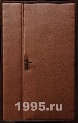 Двустворчатая дверь отделана долговечными и привлекательными материалами. Снаружи стальное полотно облицовано ламинатом, который имитирует натуральную древесину. Оригинальная винилискожа обрамляет другую сторону полотна.